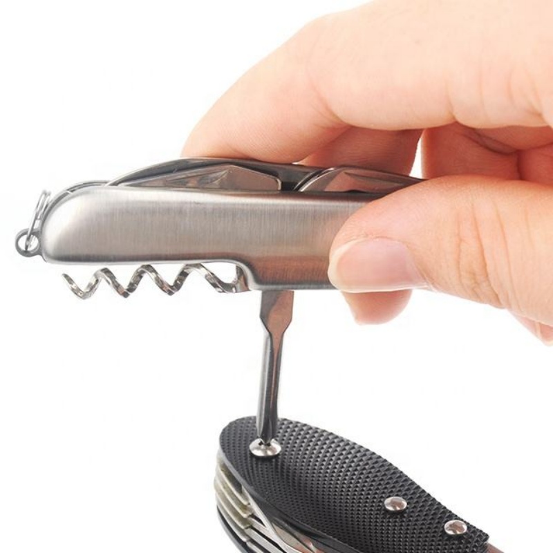 | Multi features: | knife, saw, double jagged, scissors, bottle opener, can opener, the screwdriver, file, the threading, red wine drill |