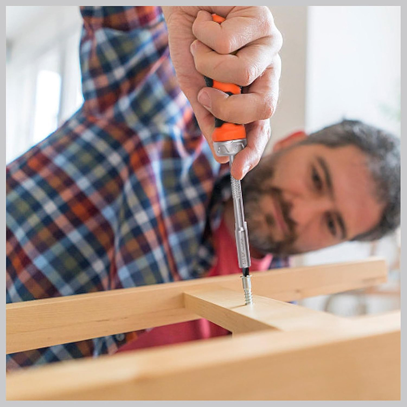 Ergonomic & Efficient Operation: Features a comfortable, non-slip screwdriver handle that reduces hand fatigue during extended use. The 1/4" drive design allows quick bit/socket changes, making it easy to switch between different screw types and sizes in seconds.