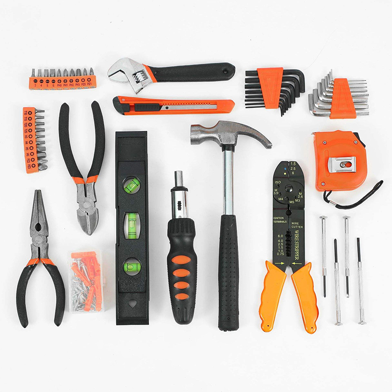 Complete Tool Combination: Comes with 129 assorted tools including hex keys, screwdriver bits, level, pliers, adjustable wrench, claw hammer, tape measure, cutter and more, to meet almost all daily handwork requirements.