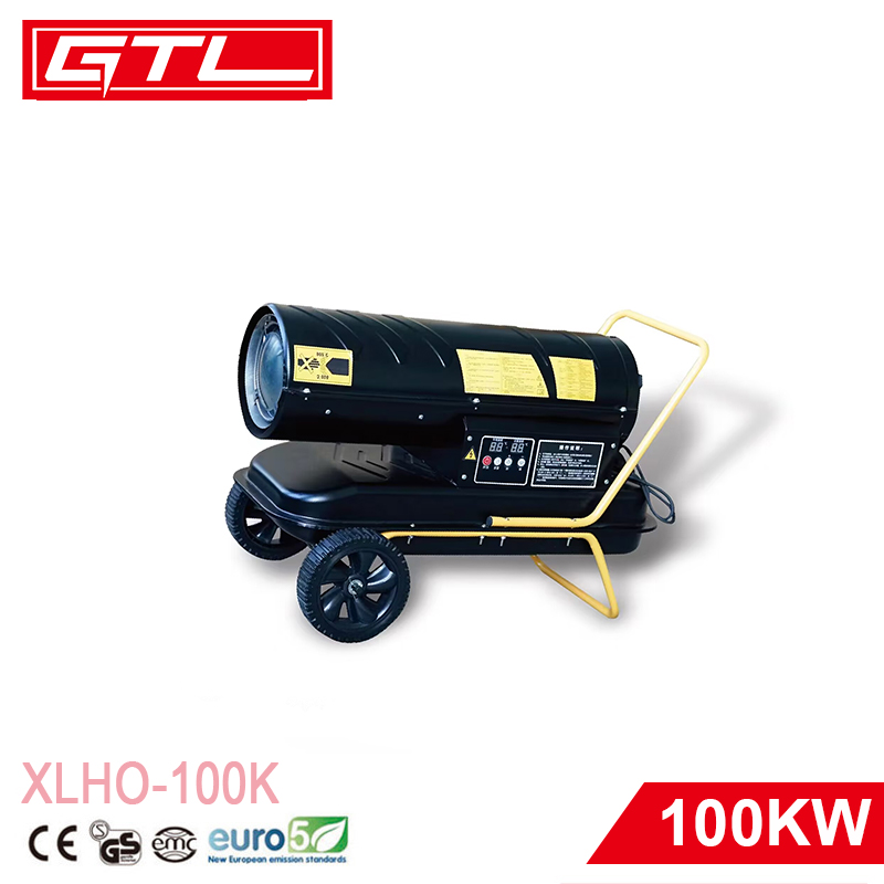 This 100KW industrial diesel/kerosene heater delivers powerful heating with a 1300 m³/h air output, ideal for large spaces like workshops. It features a 68L oil tank (fuel consumption 4.0-4.8kg/h), operates at 220V/50Hz, and comes in a portable 1200×580×630mm design for easy mobility.