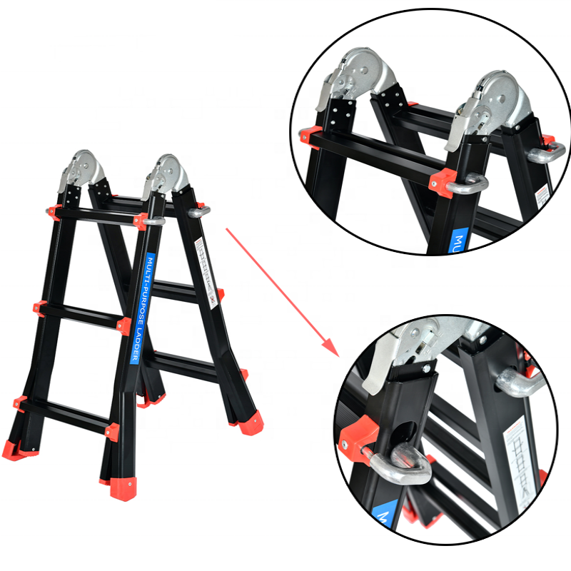 Multi-functional folding: It can flexibly change its shape to meet various usage scenarios such as straight ladders and A-frame ladders, and adapt to different operation requirements, such as home light replacement and outdoor construction