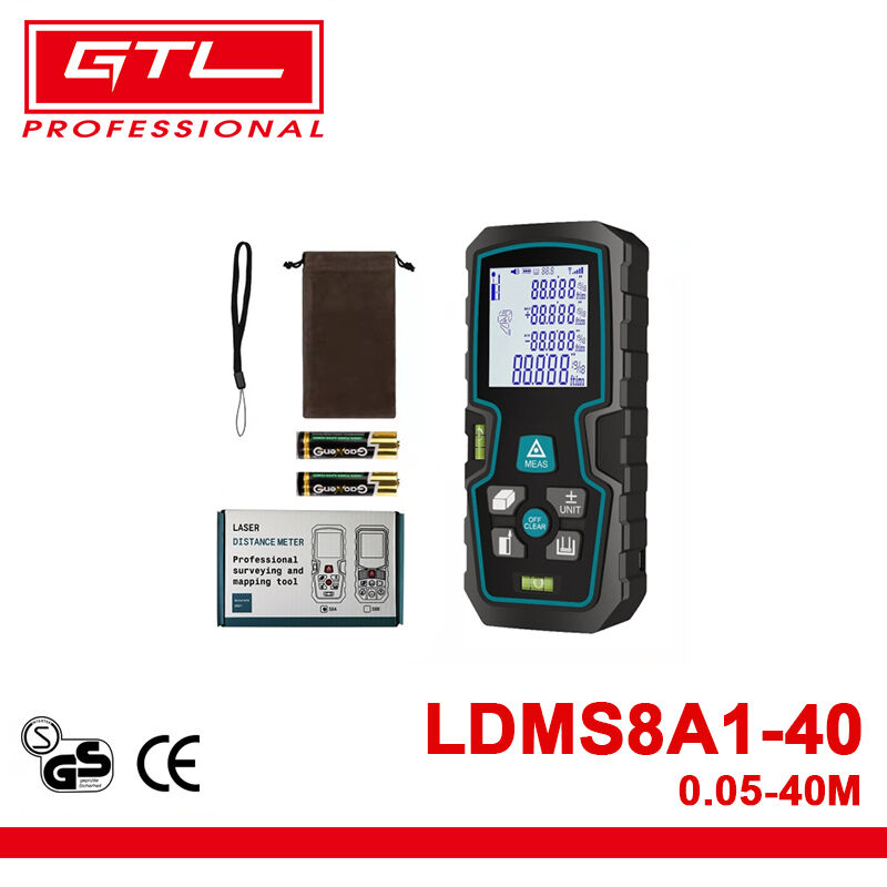 This 0.05-40M laser distance meter features ±1.5mm accuracy, IP54 protection, and a 2.2-inch backlit screen. It supports multi-unit measurement (m/ft/in) and core functions like area/volume calculation, with 20 data memories for efficient surveying.