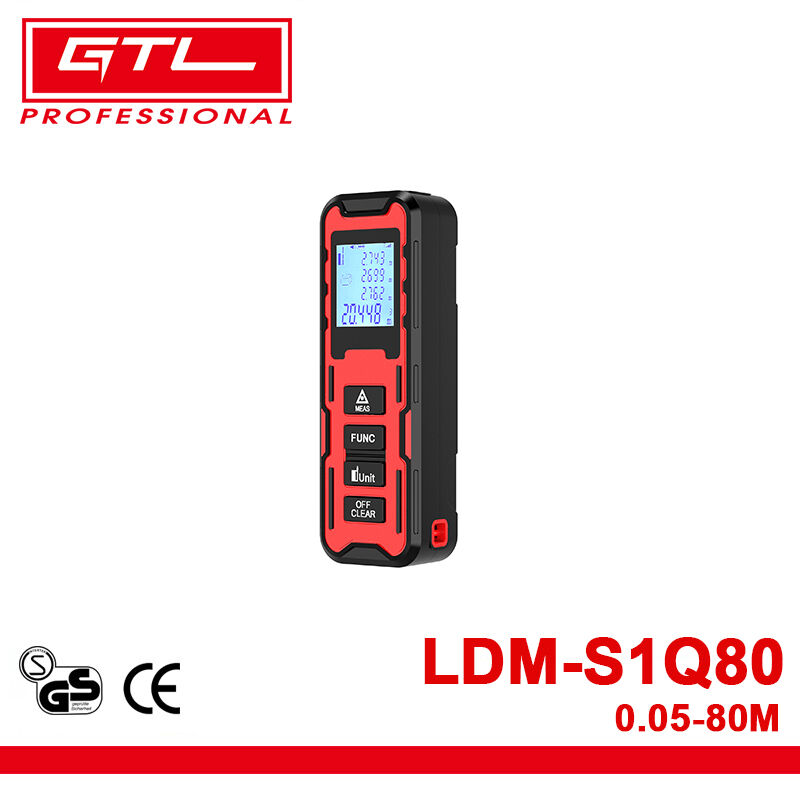 High Accuracy: Equipped with Class Ⅱ laser technology (630-650nm, p<1mW), this laser distance meter achieves ±2 mm accuracy and supports measuring distances from 0.05m to 80m. It also features electronic angle measurement (±90°) for more flexible positioning