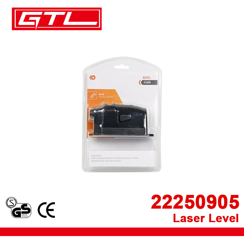 Compact home-use laser level with 9m working range, 5mW red laser for accurate horizontal and vertical alignment.