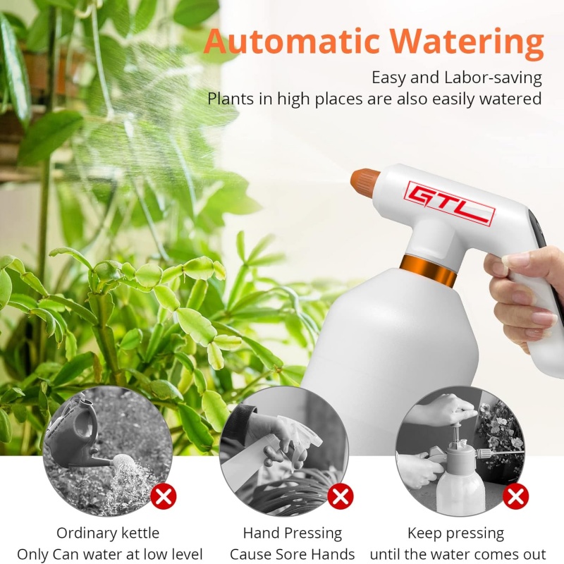 Simple & Labor-Saving: One-Click to turn on the mister for plants ,achieve automatic watering to help you say goodbye to manual spraying. The handle of the watering mister is ergonomically designed, which can effectively reduce the pressure caused by the weight of the water. You can easily complete the work and get rid of the fatigue of your hands and wrists