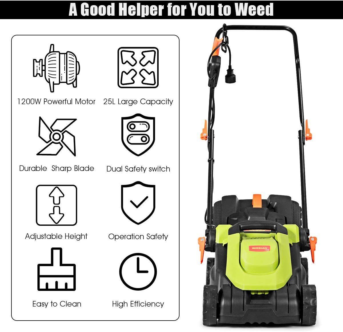 Easy Operation & Storage: Features a push-button start for hassle-free use, with no messy oils or gasoline required. The hard-top grass catcher detaches easily for convenient disposal. Its foldable handle saves storage space and simplifies storage.