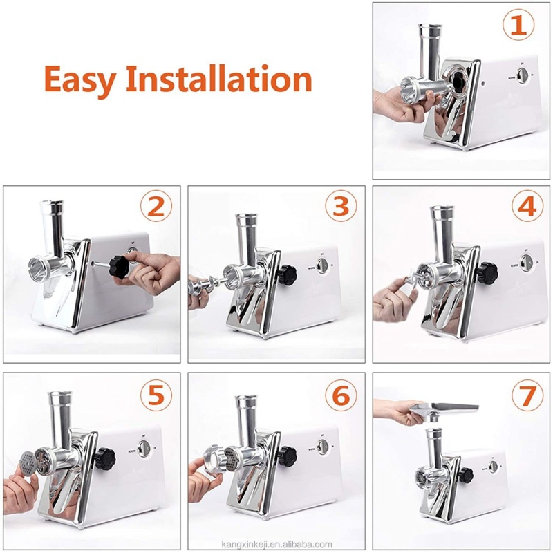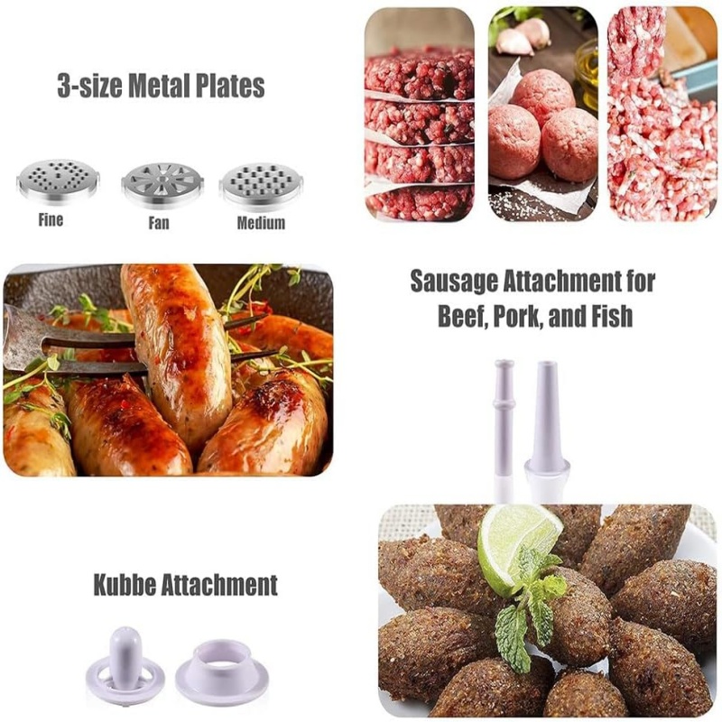 Effortless Cleaning and Maintenance:Crafted from food-grade stainless steel and PP material, the cutting blades, grinding plates, push rod, sausage stuffer tube, kit are all easy to clean.