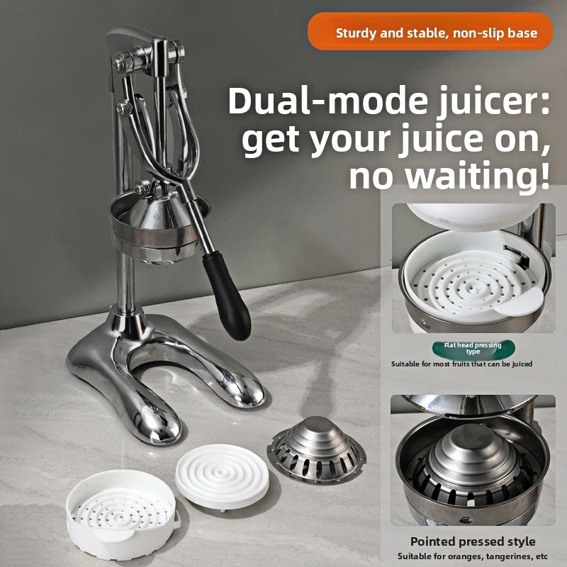 This manual juicer features a simple handle-pull design for quick, electricity-free juice squeezing, low-carbon and eco-friendly. Its separate structure preserves the nutrition of fruits and vegetables while ensuring easy operation. Made of durable stainless steel, it is sturdy, stable, rust-resistant and long-lasting. The U-shaped thickened base enhances stability and prevents tipping during use. Ideal for lemons, oranges, grapefruits and more, it is a practical choice for home and kitchen use.