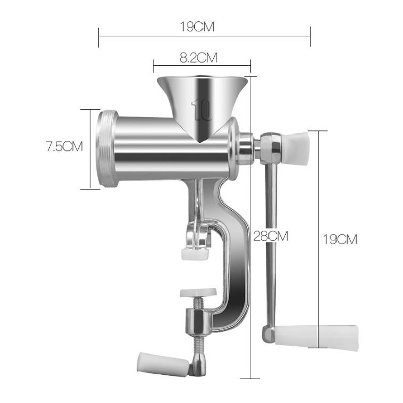 Intelligent Design Of Meat Grinder:The rounded feed opening of this manual meat grinder allows for easy ingredient placement. The bottom design enables secure attachment to the table during use, providing stability and better leverage. The fixing clip comes with a silicone pad to prevent table wear and tear.
