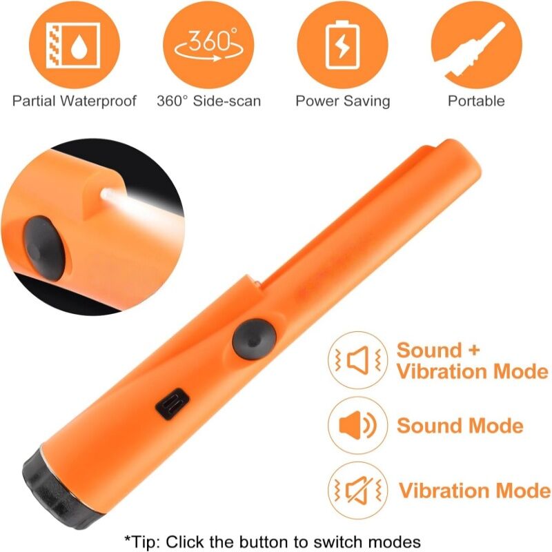 Widely Application: This metal detecting pinpointer can do various types of jobs like finding coin, gold, silver, relics, jewelry to help you easily find treasures or missing metal objects whether indoors, outdoors, in wall, sand, grass or soil, even in a extreme temperature range of -35ºF (-37ºC) to 158ºF