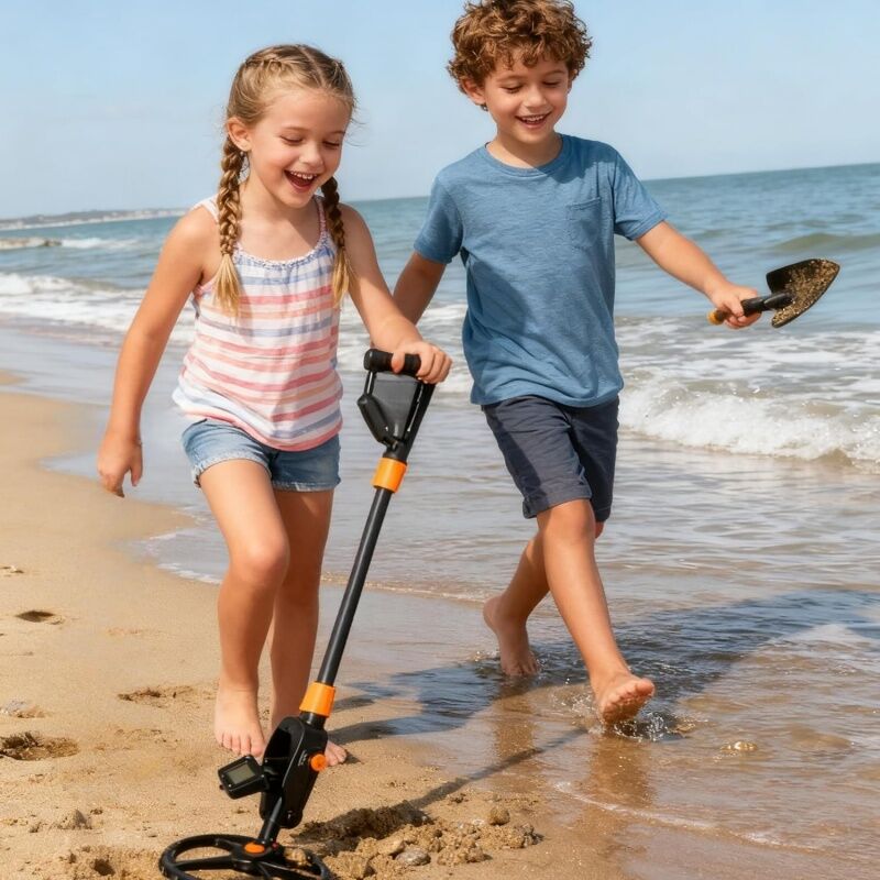 Simple Design:This metal detector for children features one-button operation with a clear LCD display, accurately detecting gold, silver, coins, and other buried treasures-perfect for beach treasure hunts, backyard explorations, and outdoor adventures.
