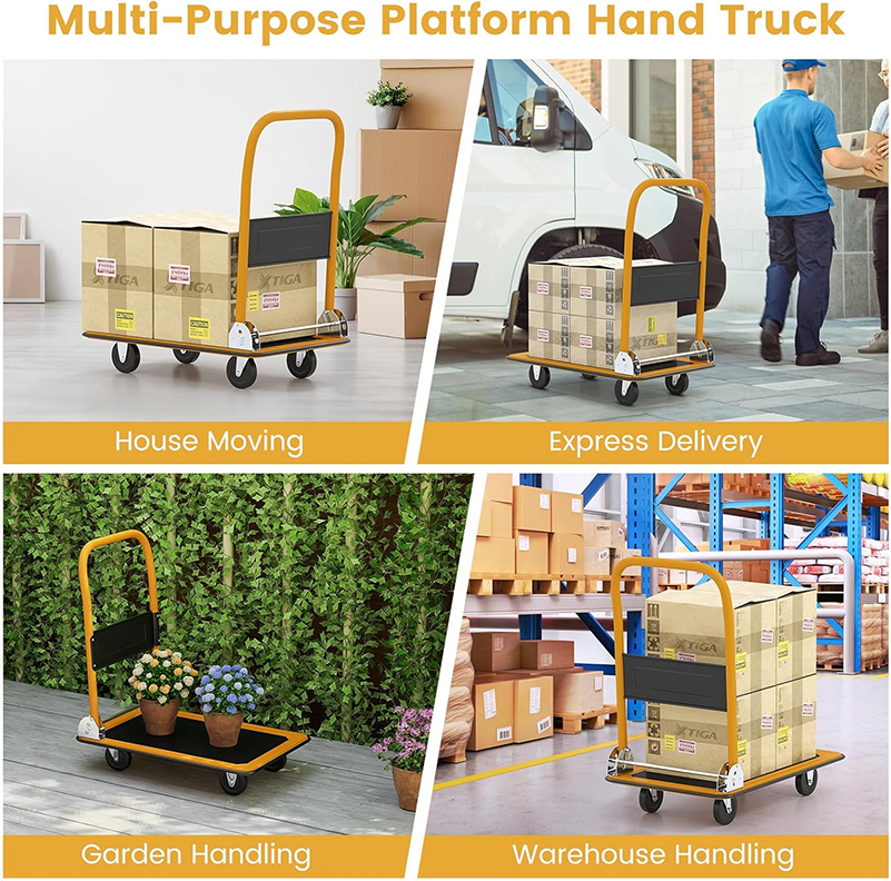 Sturdy and Durable: The precision push wheel design easily solves the sliding problem during operation. With a load capacity of 661 lbs, the push cart dolly makes it easy to transport cargo from one area to another