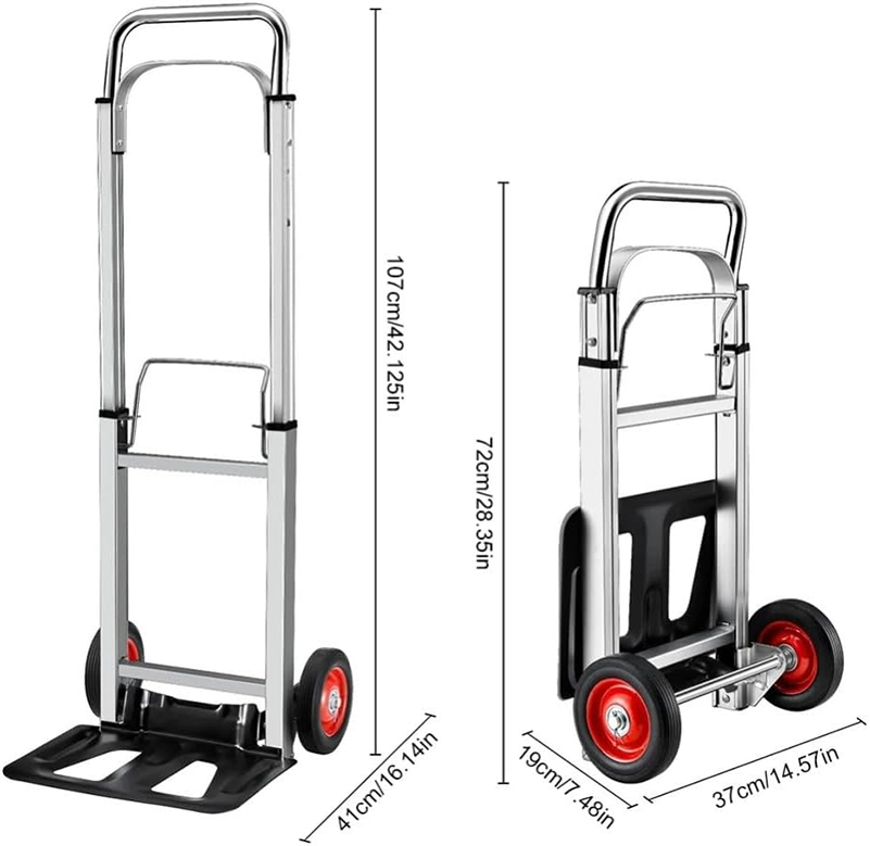 PORTABLE: The hand truck aluminum foldable is made from a combination of light metal and durable plastic,this hand truck is both lightweight and incredibly portable;Simply place it in your car trunk after folding,and you’ll always have a handy tool ready for any moving task,whether at home,work,or on the go.