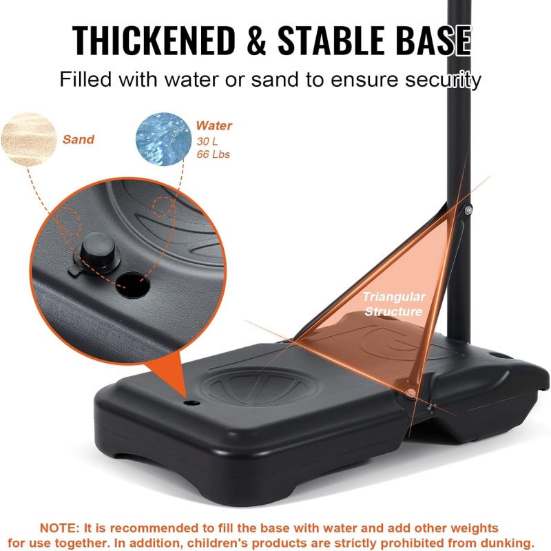 Ultimate Stability: The basketball hoop comes with a thicken and stable base that can be filled with water or sand. This feature ensures the hoop's security during intense play, preventing wobbling or tipping.