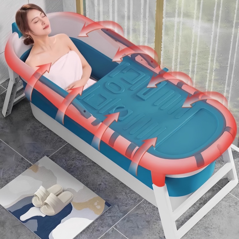 Indulge in superior comfort with this large-capacity Portable Folding Bathtub. Designed for a truly immersive experience, it holds 350 liters of water yet remains highly practical-folding down to a slim, easy-to-store size. The bathtub comes equipped with a neck rest, foot massager, and soap dish for instant spa-like luxury. It ensures safety with a non-slip foot and is built to support up to 100 kg. Simple to set up without tools and designed to fit most bathrooms, this innovative tub offers the perfect blend of deep relaxation and everyday convenience.