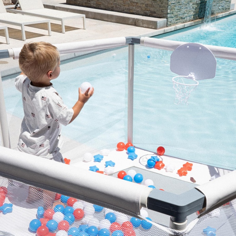 This kids' trampoline is perfectly sized for toddlers/children-compact for indoor/outdoor use, crafted from high-quality materials to hold up to 220 lbs. USA-designed with a sleek, aesthetic look that fits any playspace. It boosts balance, coordination, and motor skills, plus includes a hoop and basketball for extra sports fun. Safety-focused with a no-gap design, padded bars, safety net, and soft vegan leather frame padding, ensuring endless safe, active play for little ones.