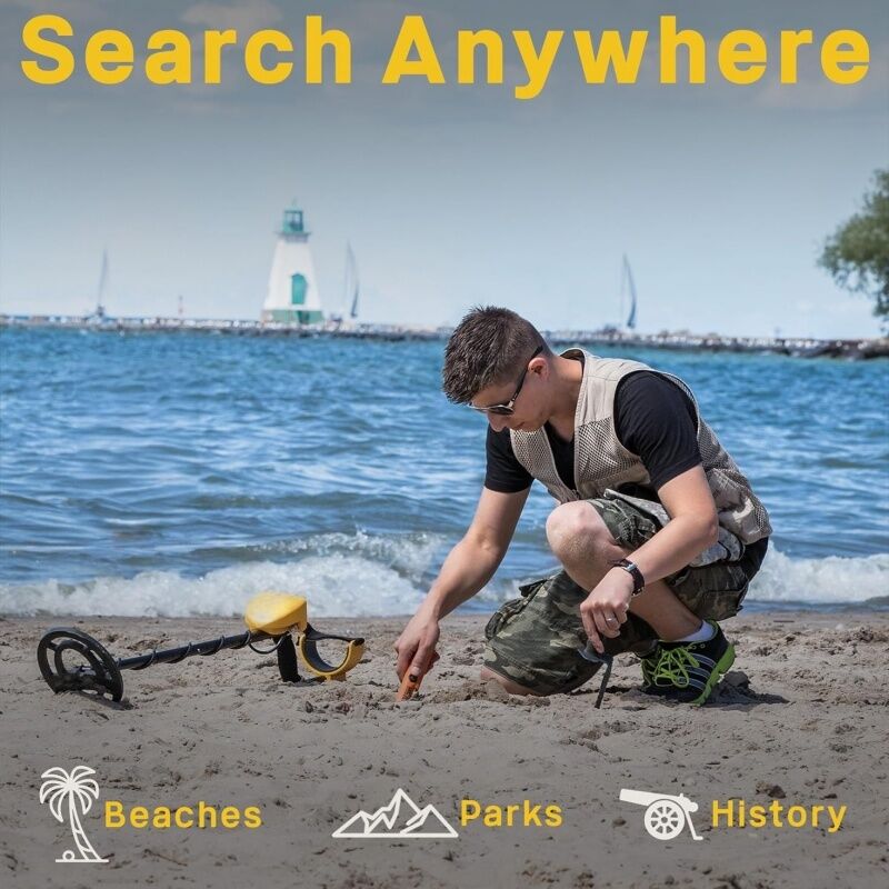 This high-performance metal detector streamlines treasure hunting with **Electronic Pinpointing** for precise target location and faster recovery. Boasting 5 versatile search modes (All Metal, Jewelry, Custom, Relics, Coins), it offers customizable accept/reject discrimination to zero in on desired items. Equipped with a coin depth indicator and user-friendly features (large LCD, push-button controls, battery monitor, adjustable arm cuff), it delivers efficiency and comfort for all hunters.