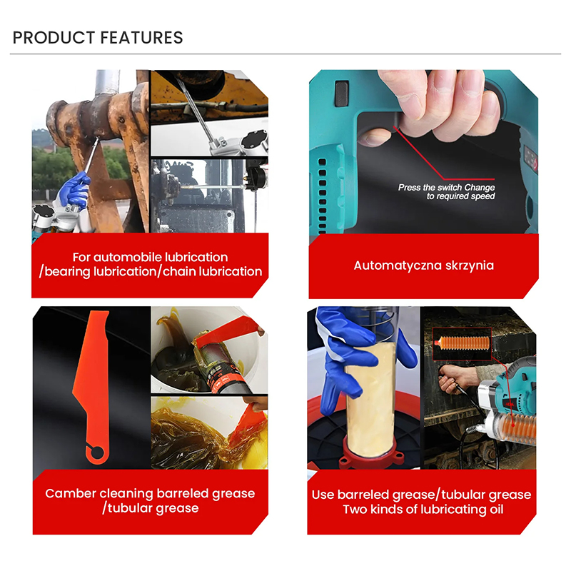 Large Capacity & Compatibility: 500CC capacity (supports 220/500mm grease cartridges) reduces frequent refills, suitable for long-duration maintenance tasks.