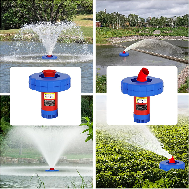 Additional Features: This floating pump includes interchangeable functional modes: one mode produces a wide water spray fountain with a diameter of 9-10 meters, ideal for daily pond aeration and oxygenation (oxygen transfer capacity: 0.0371 acre). The other mode supports pumping or irrigation, with a maximum lift of 8 meters. This makes it an excellent tool for managing water resources in your garden or farm. The pump can operate in water as shallow as 0.5 meters (1.6 feet).