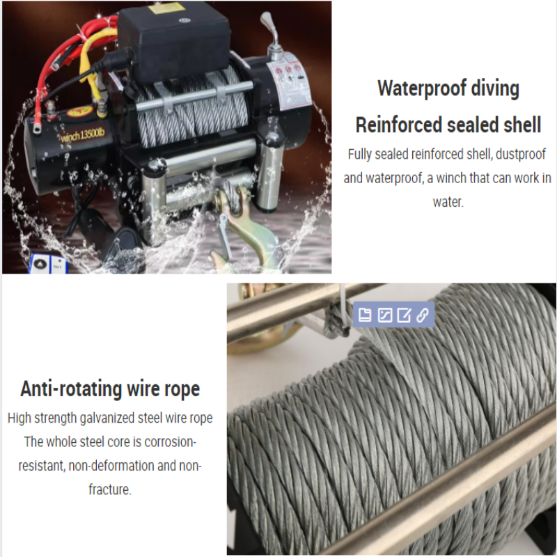 This 12V electric winch is built with a premium pure copper motor for stable and durable power. Boasting 6000LBS load capacity, it provides strong lifting and horizontal traction performance. The wireless remote control enables effortless and safe operation. Fitted with thick steel wire rope and a sturdy hook, it features solid construction. With fast lifting speed and compact size, it perfectly suits outdoor rescue, heavy hauling and daily engineering use.