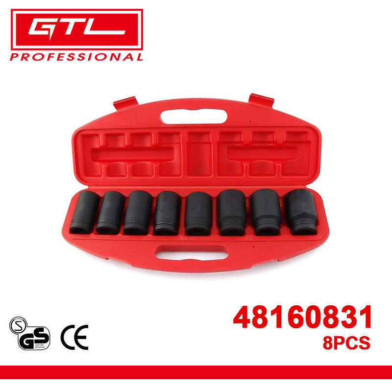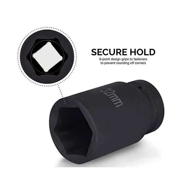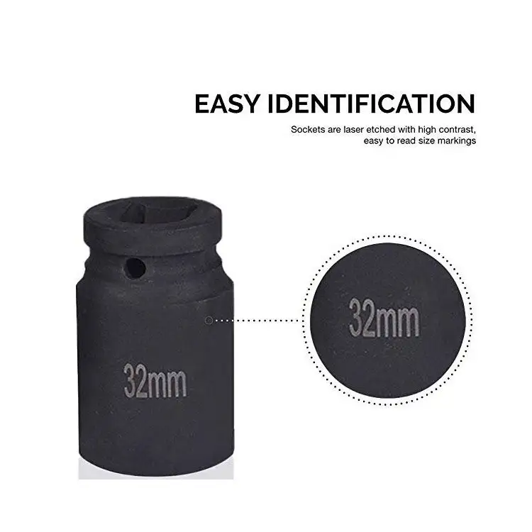 Targeted Large-Size Range:This 8-piece impact socket set covers key large sizes from 19mm to 38mm (19-22-24-27-30-32-33-38mm), specifically designed for handling big fasteners in heavy-duty tasks like machinery maintenance or construction.