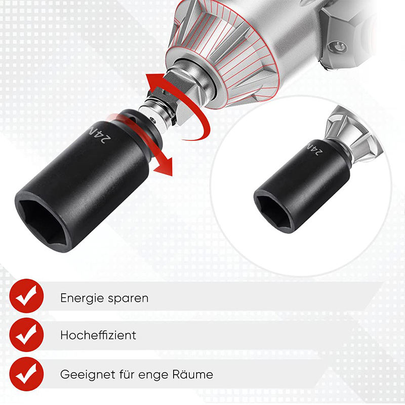 High Maneuverability: Equipped with a 1/2" universal joint and connecting bar, the set can adapt to angled or offset workspaces, ensuring smooth operation even in non-straight positions.