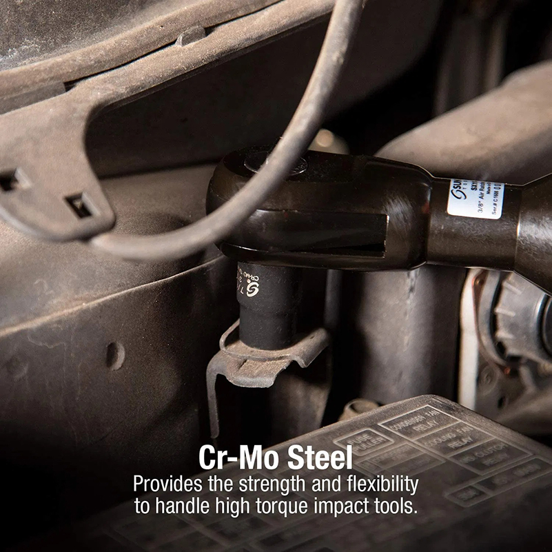 Material: CRV (Chromium-Vanadium Steel) socket, which offers superior strength, toughness, and wear resistance. It can withstand high torque and repeated impacts, making it durable for automotive repair, heavy machinery maintenance, and other demanding applications.