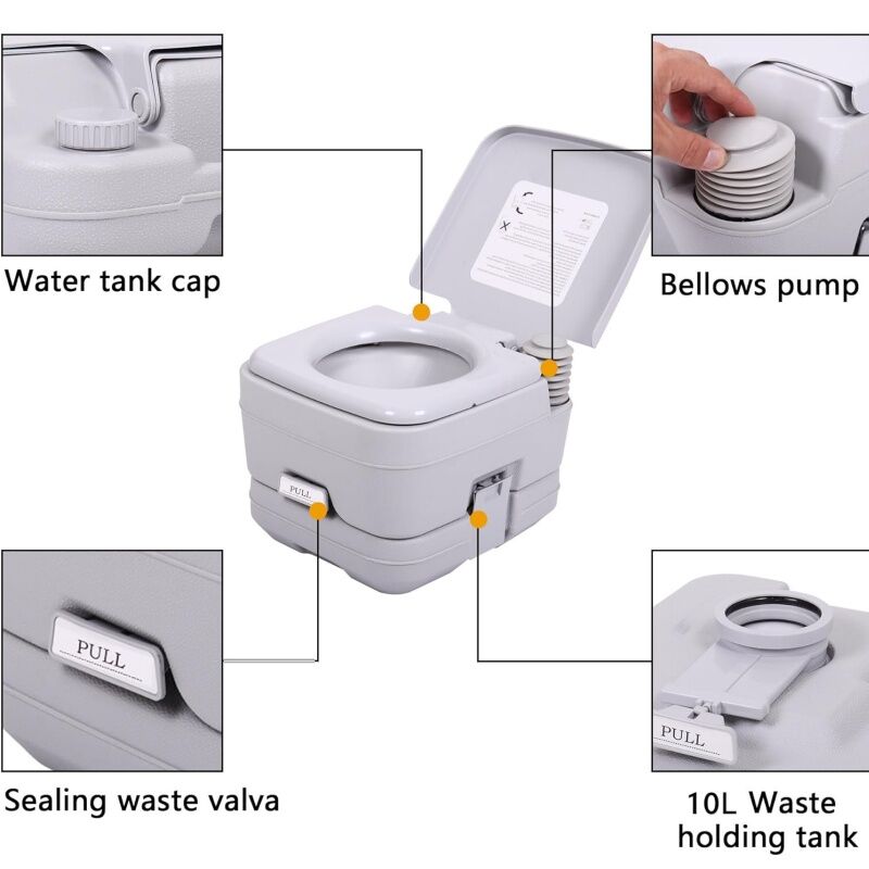 Multi-functional Toilet: Our portable cassette toilet could be used in a home, caravan, trailer, or boat, and also could be used for camping, hospital, outdoor events, this camping toilet will also be suitable for kids or the elderly who can not take good care of themselves in wild camping or long-distance travel