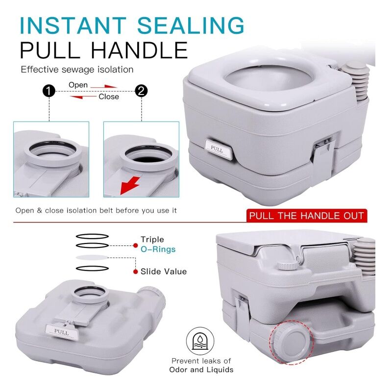 Odorless & Leak-Proof Design: Portable toilets made of High-density PP/ABS/PE material feature an anti-leakage and odor sealant valve to lock liquid and odors, keeping your living environment odorless.Portable toilets are removable by means of a pin for emptying the sewage, Simple disassembly and easy cleaning