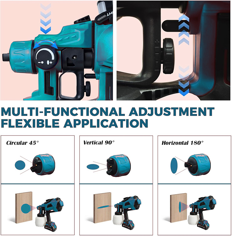 Achieve perfect coverage on any surface. Easily adjust the spray head direction (horizontal/vertical) and instantly switch between circular and elliptical patterns using the control knob. Effortlessly handle narrow gaps or broad surfaces.