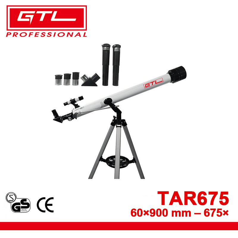 This 60×900 mm astronomical refractor telescope delivers a variable magnification of 45×-675×, paired with a 3× Barlow lens and 1.5× erecting lens. Boasting a 60 mm aperture and 900 mm focal length, it ensures superior light collection and crisp imaging. It includes H20mm, H12.5mm and SR4mm eyepieces for flexible adjustment, and a stable tripod for easy installation, ideal for amateur astronomers to observe celestial bodies and land objects.
