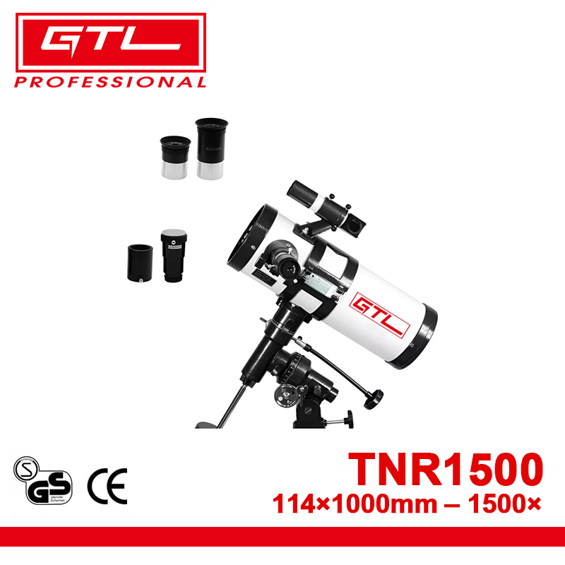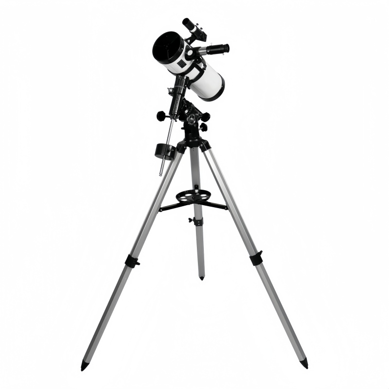 This Newtonian Equatorial Telescope 114×1000 with tripod offers 50×-1500× magnification, equipped with K10mm/K25mm eyepieces and a 6×30mm finder scope. Its 114mm concave objective mirror and 1"" resolving power ensure superior light collection and sharp imaging. The equatorial mount and aluminum tripod realize stable star-tracking, ideal for all levels of astronomy lovers to observe celestial bodies.