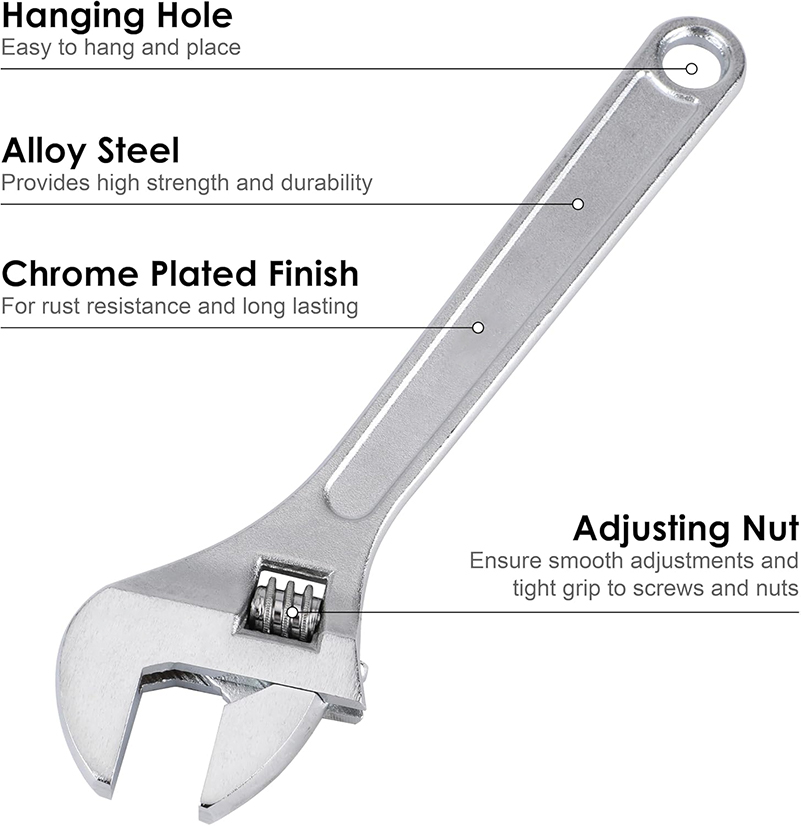 This 6-inch adjustable wrench is crafted from high-quality carbon steel, delivering exceptional strength and durability for long-term use in various repair and maintenance tasks. Its adjustable jaw design ensures a secure fit on a wide range of fastener sizes, making it a versatile essential for both professional tradespeople and DIY enthusiasts.