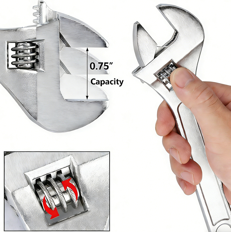 Precision Adjustable Jaw:The smoothly adjustable 6-inch jaw fits a wide range of fastener sizes, eliminating the need for multiple fixed wrenches and providing a tight, secure grip to prevent slipping during operation.